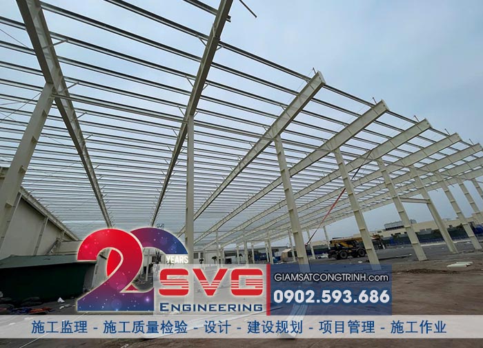 在工业化、现代化发展的背景下,工业园区大规模仓库的建设对施工进度与技术质量提出了严格要求。对于Texhong工业园区3号仓库项目(位于Quang Ninh省),SVG Engineering荣幸承担施工监理咨询职责,确保从地基基础到钢结构框架及围护结构的每一个细节均符合相关标准。